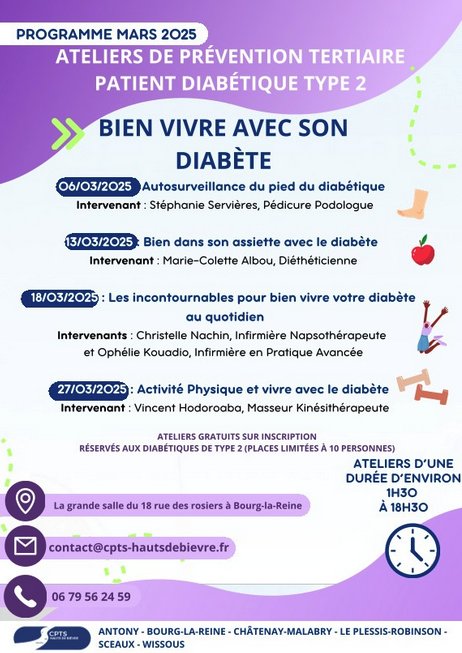 N’hésitez pas à vous inscrire ou un proche souffrant de diabète de type 2! 📆 Ces ateliers sont faits pour vous!